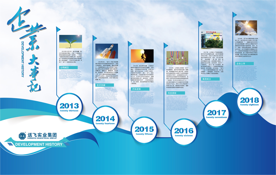 “送飛”團隊從位于廣州市海珠區赤崗西路266號小聰創意園的一間不足45平米小屋開始創業,懷揣著“振興中華航空航天事業,打造一個具有自己特色的國際知名品牌”的夢想,“廣州送飛助航機電設備實業有限公司”應運而生。創業初期由于資金缺乏,研發環境簡陋,甚至沒有窗戶,只能等待其它公司的人員全部下班后,晚上借用公用衛生間的窗口搜索衛星信號,廢寢忘食、通宵達旦、激情澎湃、攻堅克難,歷時數月終于成功研發出中國第一代“GPS衛星無線控制航空障礙燈”和中國第一代“VHF無線控制直升機坪系統”,填補了行業空白,并成功申請實用新型專利13項、發明專利6項,打響了團隊創業的第一槍。從幾十平的小屋到整層寫字樓;從產品研發生產、直升機坪專業設計施工到機場建設一體化服務;從單打獨斗到兼并國內5家同行業公司的“送飛實業集團”。 送飛實業的一次次蛻變,用自己的成長譜寫了一個追逐夢想的團隊創業史。時光荏苒、歲月如梭,送飛實業一步一個腳印發展到如今的“送飛實業集團”。